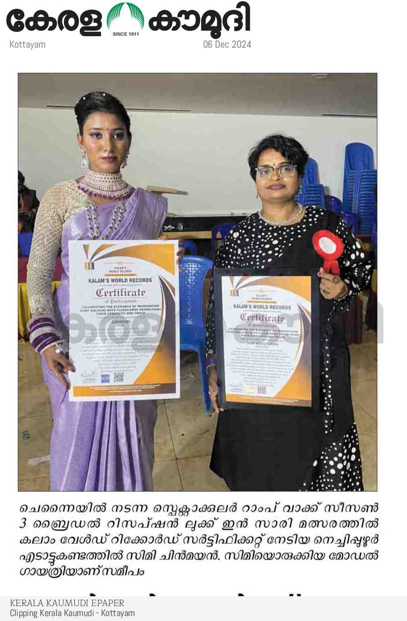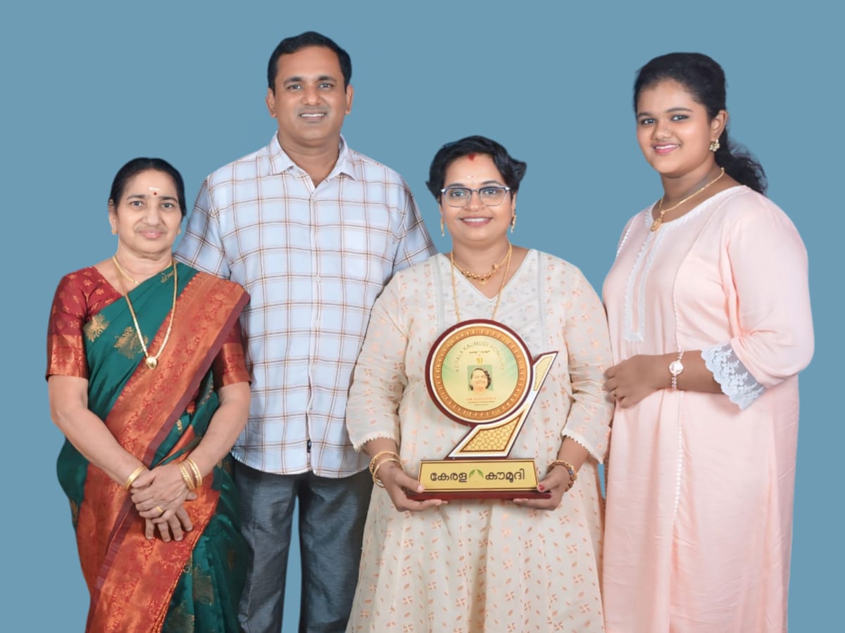 Simi Chinmayan Receiving Prestigious Award during the grand 113th Anniversary Program of Kerala Kaumudi, one of Kerala's most esteemed publications.